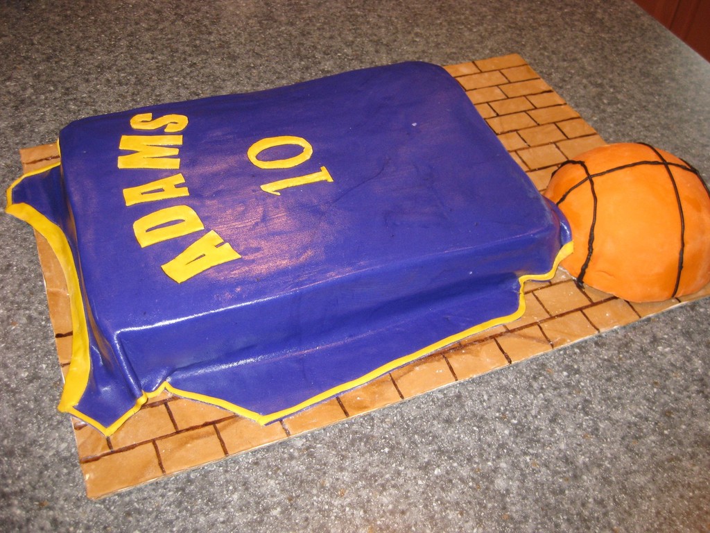 Basketball lakers jersey cake. The basketball and stadium are made out of cake. Well i never claimed to be a great cake artistbut here is my attempt at a basketball and jersey. Remember to add a personal touch on your cake not just a ball jersey or a basketball court so it will be touchier and add an element of personal feeling.