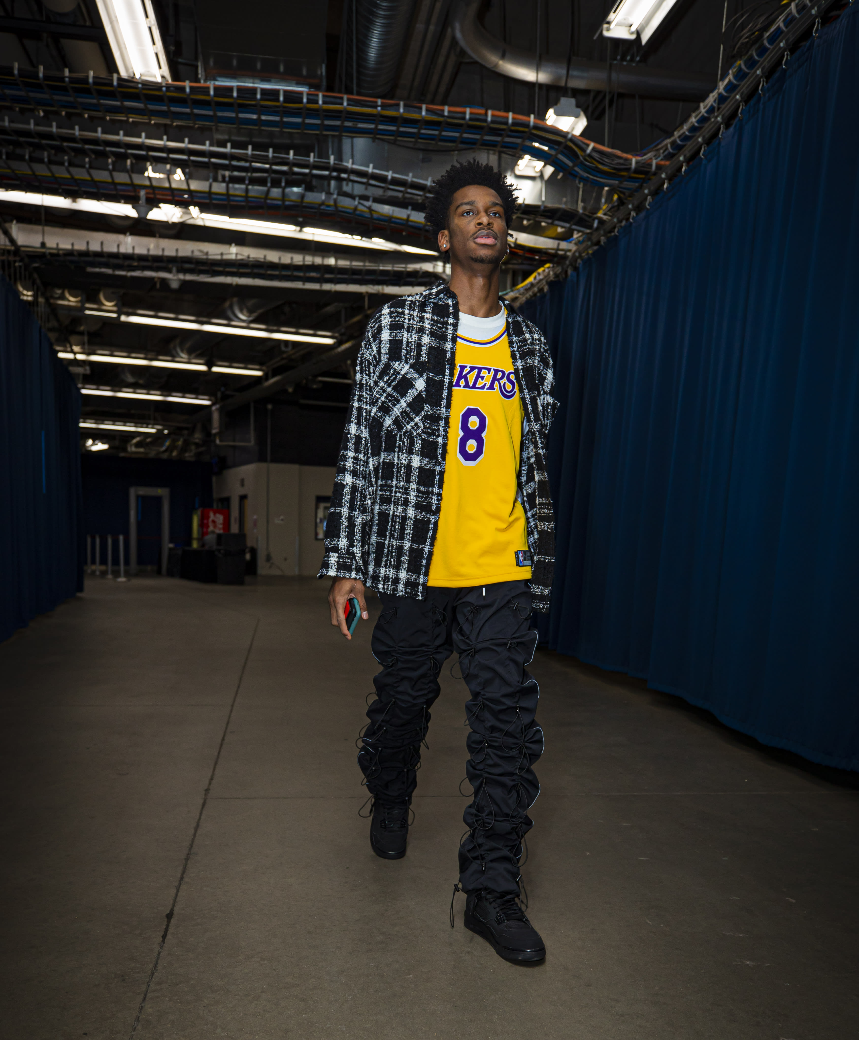 Patrick Schwarzenegger Wears Saint Laurent Jacket Kobe Bryant Lakers Jersey And Adidas Yeezy Boost 350 V2 Sneakers Upscalehype