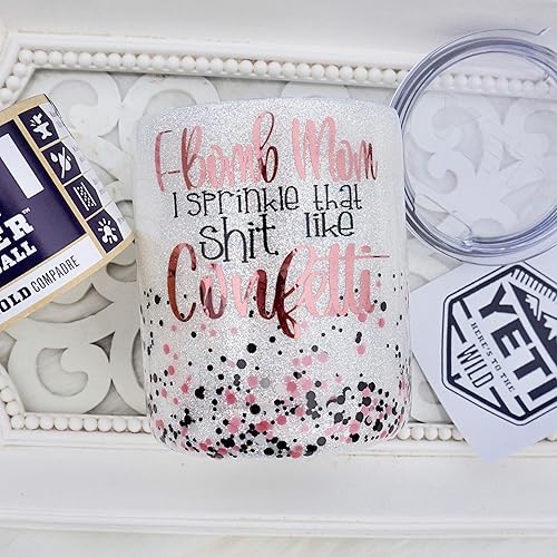 F Bomb Mom I Sprinkle That Shit Like Confetti 10 Oz Lowball Glitter Yeti Rambler Tumbler Gift For Mom Double Walled Stainless Steel Rose Gold White Black Sealed Fda Food Safe Epoxy Resin