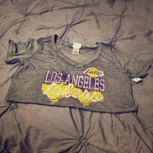 G iii sports los angeles lakers womens power alley tank top t shirt. Los angeles lakers womens on with the show t shirt gameday couture. Quick view los angeles lakers womens club scoop neck t shirt 47 brand.